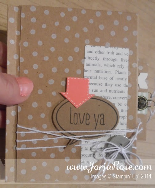 3 Brads, a Button, and the sentiment stamped on the cover, which is from the “Just